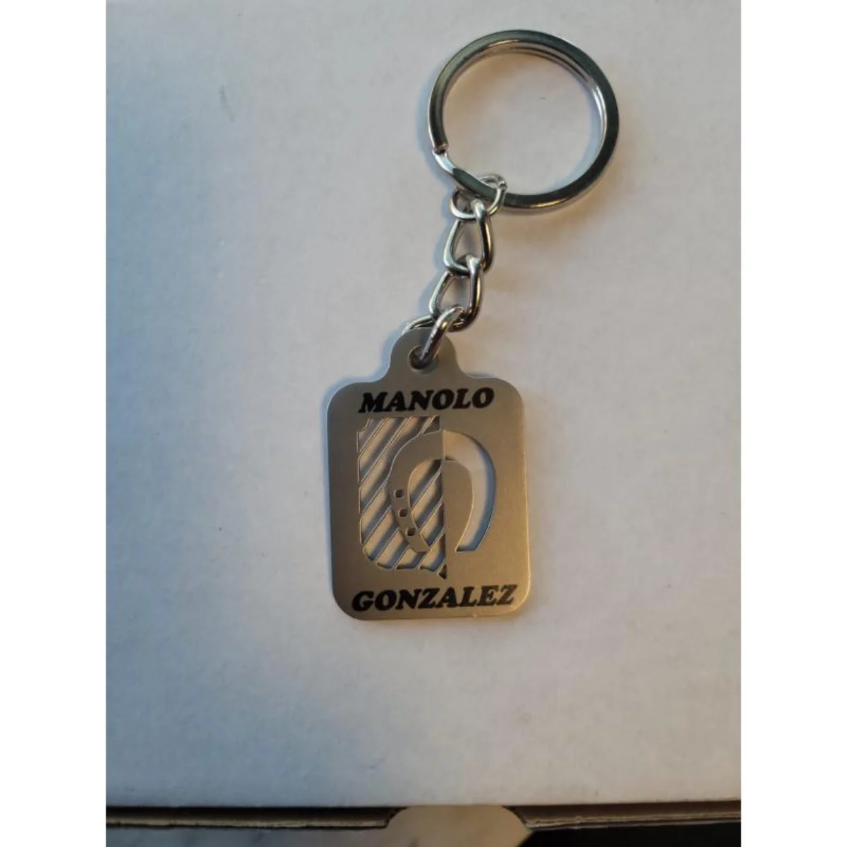 Llavero con tu logo, texto (máximo 12 caracteres) o imagen que desees cortado en acero inoxidable.